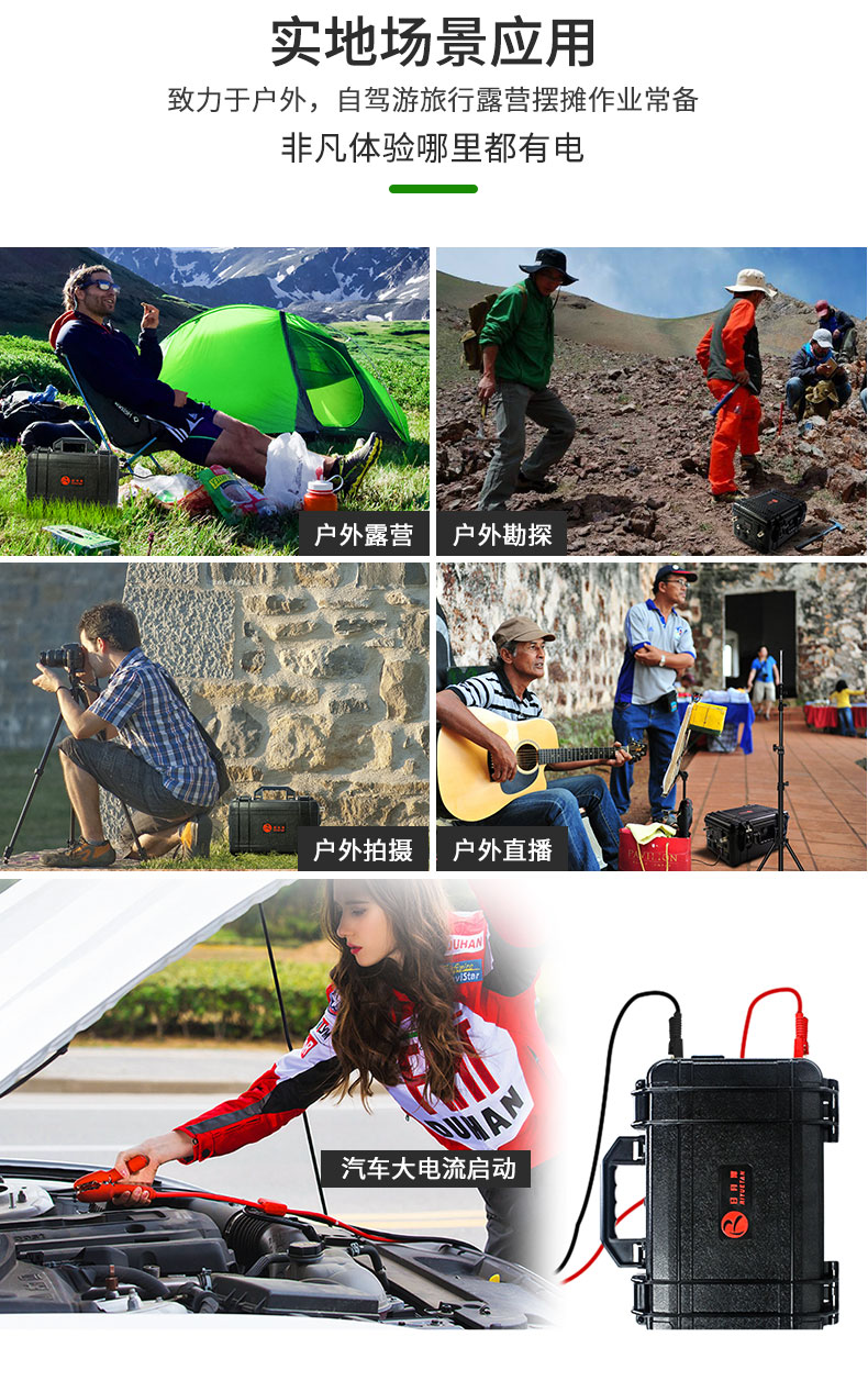 大容量修正弦波輸出,支持太陽能、汽車充電,超長續(xù)航AC/DC/USB多種充電模式。適用于電腦、無人機、房車、車載冰箱、戶外露營,夜市擺攤等
