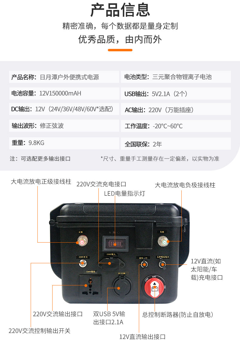 修正弦波 內(nèi)置足容量鋰電池 支持多功能充電,市電/太陽能/汽車均可充電,多功能接口,多種輸出方式滿足AC/DC/USB車充充電需求。兼容多種設(shè)備,適用于電腦、無人機(jī)、房車、車載冰箱、戶外露營,夜市擺攤等