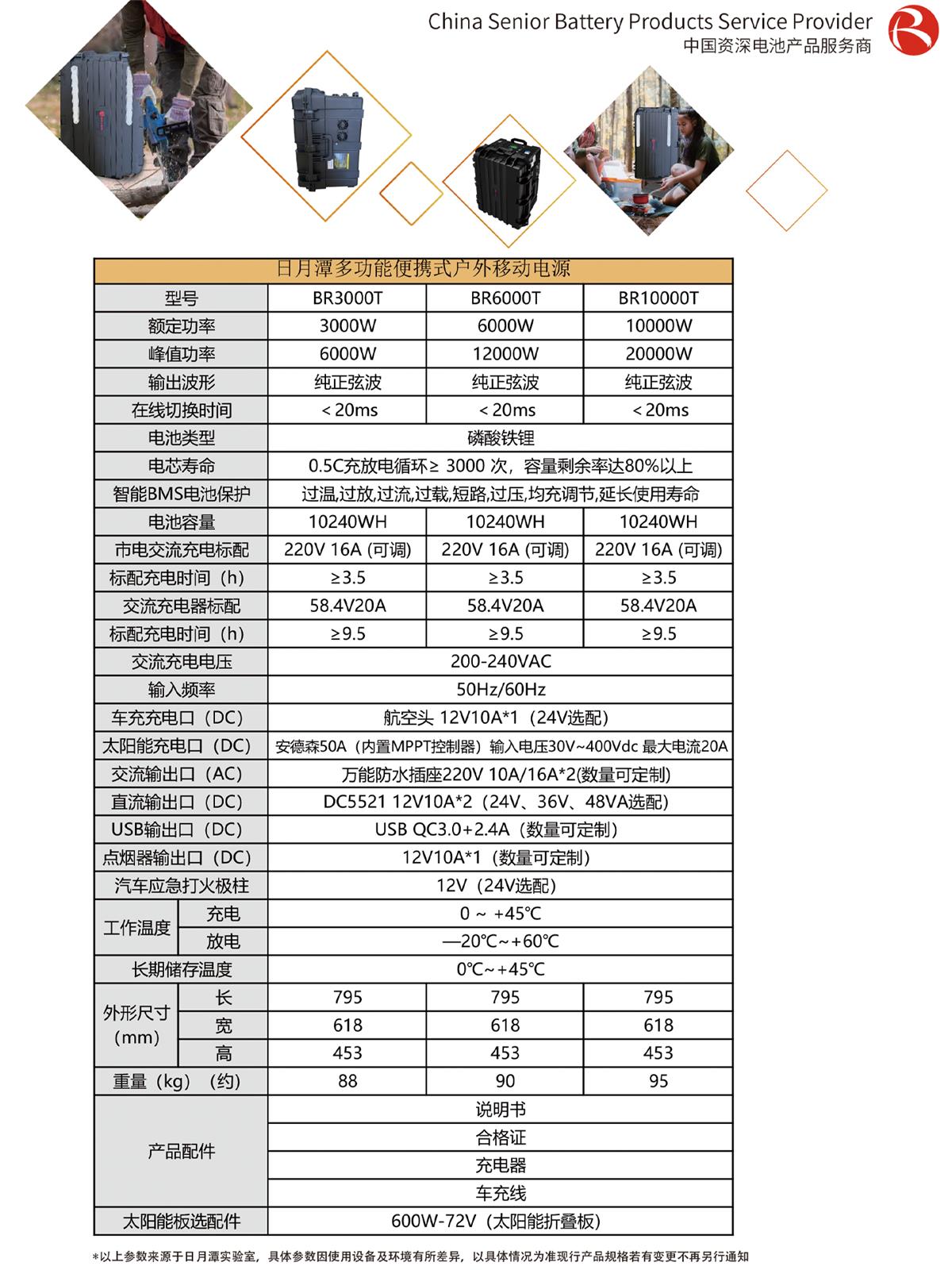 日月潭BR大功率大容量系列產(chǎn)品可用于多種戶外作業(yè)環(huán)境,可便攜式拉桿拖行,具備UPS電源功能,支持市電、充電器、太陽能板充電方式,滿足應(yīng)戶外直播、野外拉練、戶外生存、應(yīng)急搶險(xiǎn)等場景