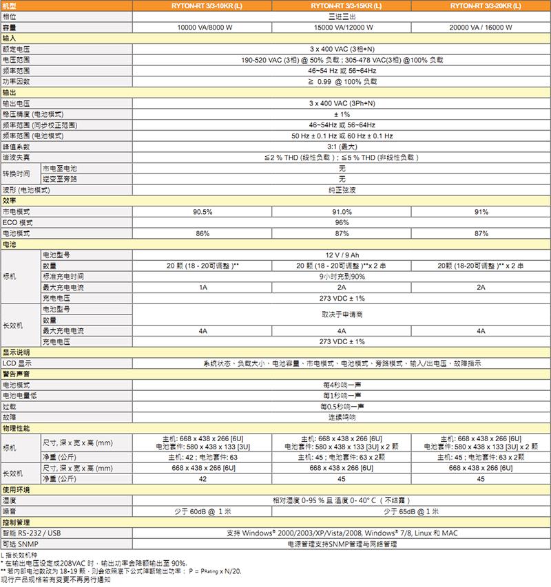 日月潭UPS不間斷電源RYTON-RT 3/3系列產(chǎn)品特點: