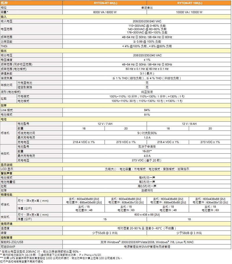 日月潭UPS不間斷電源RYTON-H 3/3系列產(chǎn)品特點: