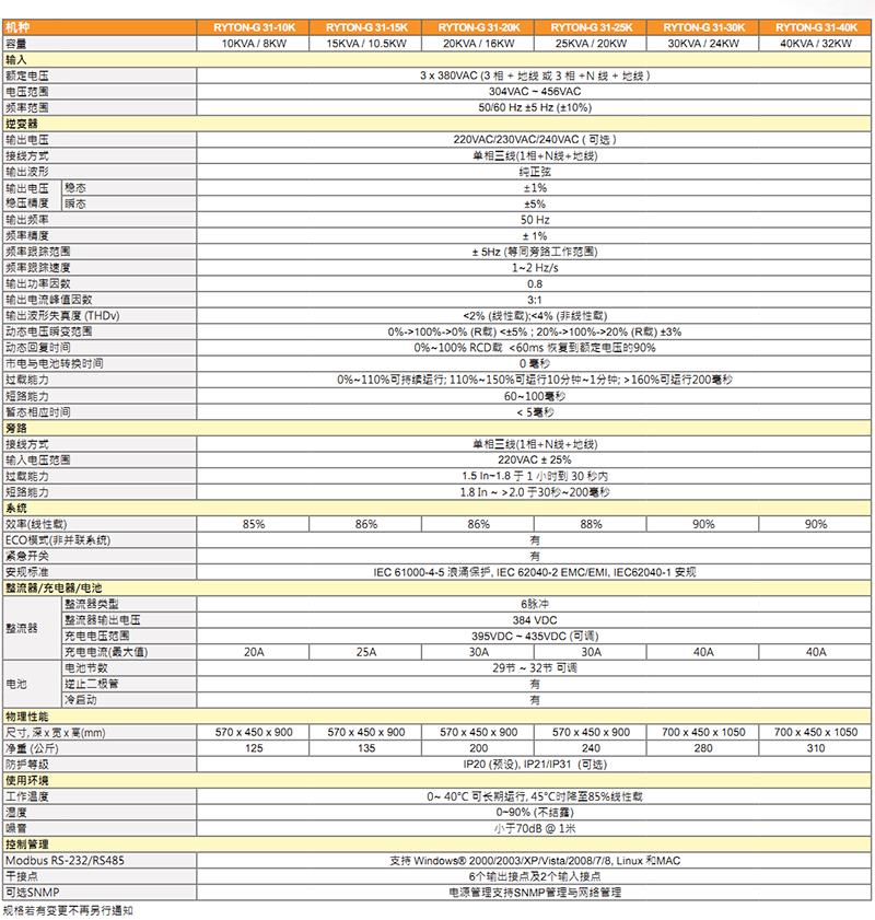 日月潭UPS不間斷電源RYTON-G 3/1(384V)系列產(chǎn)品特點(diǎn):