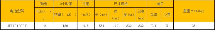 前置端子RT12120FT鉛酸蓄電池不間斷EPS/UPS系列: